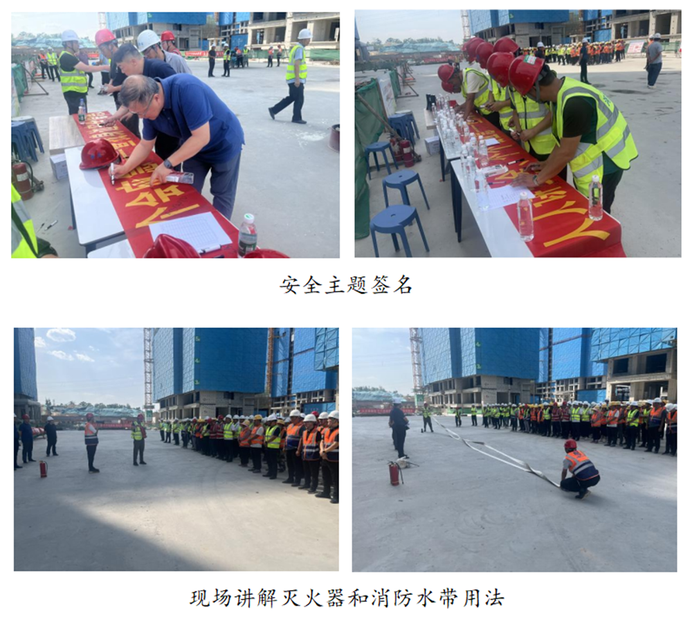 活动期间,大家积极参与安全主题签名和主题宣誓,讲解员现场讲解消防水带和灭火器的用法,解答安全生产相关知识,并开展了消防实战演练。华体会·hth|官网入口-www.hth.com 分管安全生产的总经理助理黄志澎作重要讲话,强调了安全生产的重要性,要求各单位扎实做好今年防汛工作,并为一线工人发放防暑降温药品和安全知识手册200套。